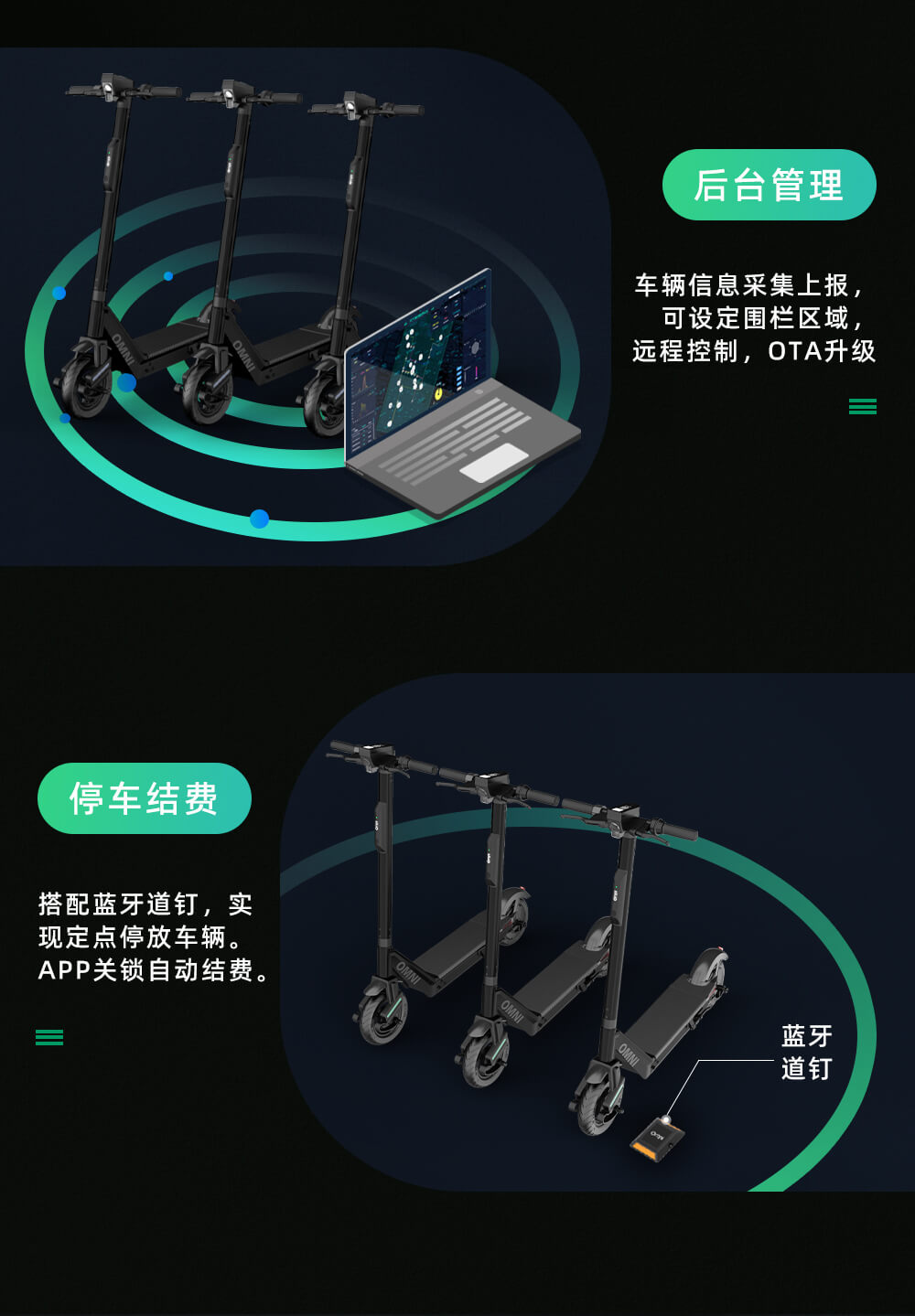 歐米智能共享滑板車半嵌入式IOT 雙頻GPS+慣導(dǎo)技術(shù) L1/L5 GNSS雙頻全球衛(wèi)星定位技術(shù),有效提高接收機位的定位精準(zhǔn)度,抑制路徑效應(yīng)的影響,并能很好的提高抗干擾能力,4G通訊技術(shù),開鎖,上傳數(shù)據(jù)更快更精準(zhǔn),結(jié)費時自動鎖車,環(huán)保塑膠材料,外表磨砂質(zhì)感,更耐磨,耐沖擊,耐腐蝕,耐高溫,延長產(chǎn)品使用壽命,歐米智能共享滑板車解決方案在全球的校園,城市以及景區(qū)都擁有大量成功的案例
